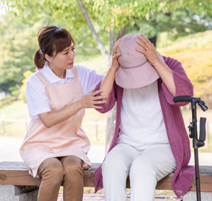 体⼒の低下により運動、外出機会の減少、⾷欲の低下、体⼒の低下と悪循環が続いてしまいます。